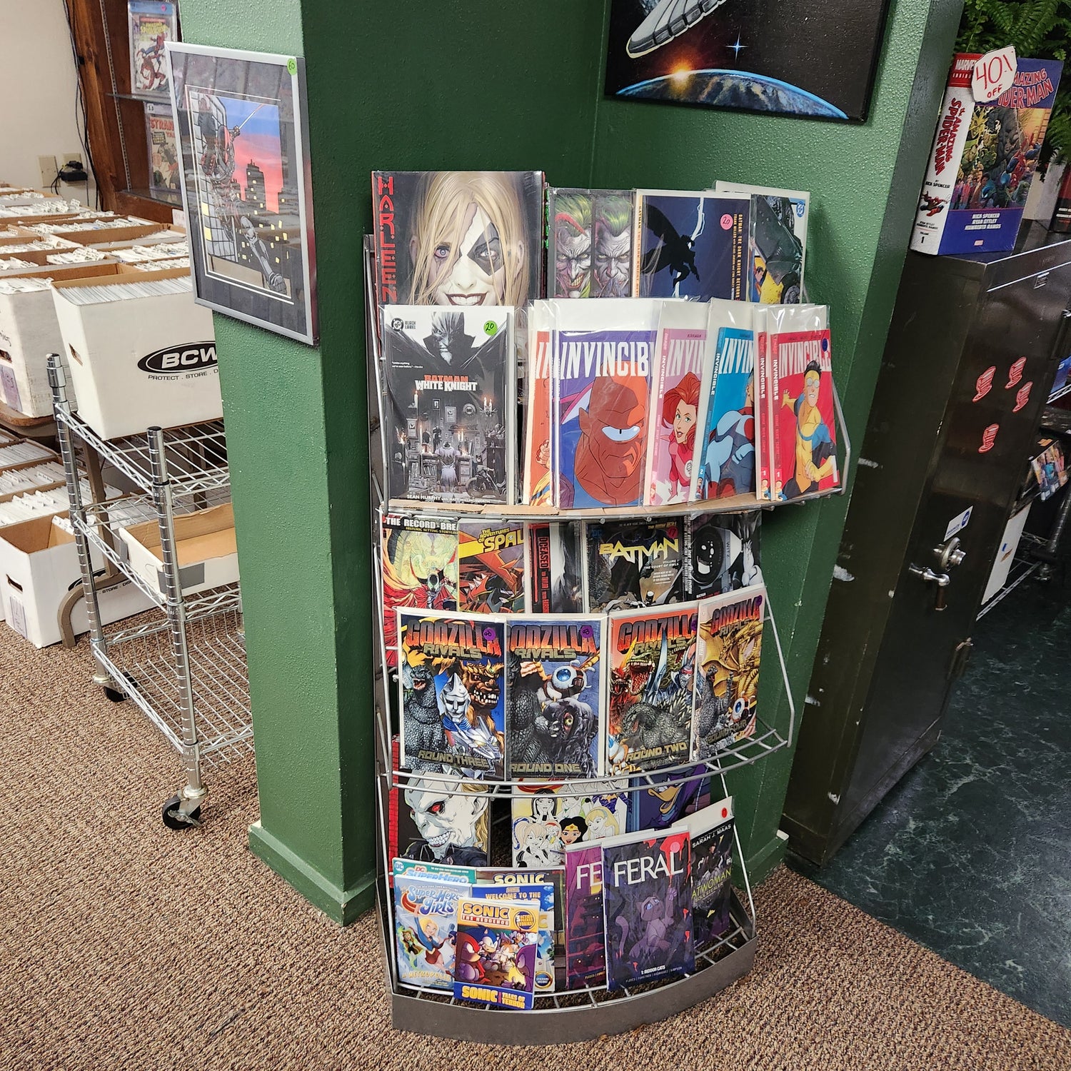We carry over 25,000 comics, from vintage issues and graded slabs to new releases and graphic novels. You’ll also find local artists’ work, sports cards, non-sports trading cards, and a wide variety of toys and collectibles—something for every kind of fan.
