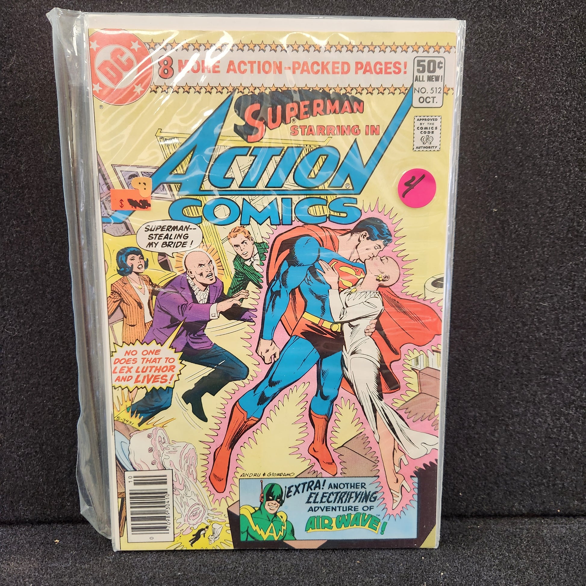 Action Comics #512 (Oct 1980). The stunning conclusion of Lex Luthor's master plan! Can Superman save Metropolis and himself? Also features another electrifying Air Wave adventure.