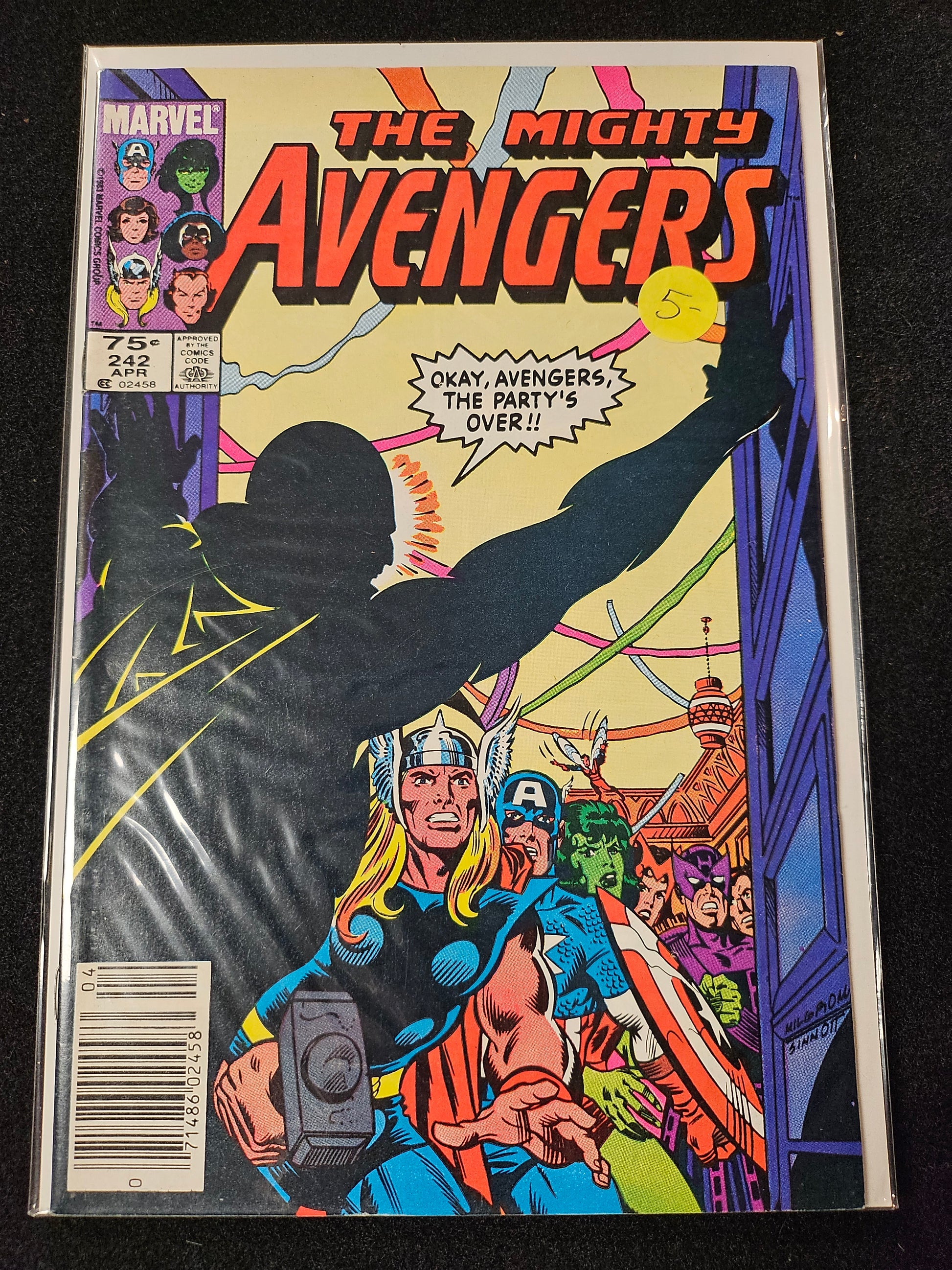 Avengers #242. Okay Avengers, the party's over.