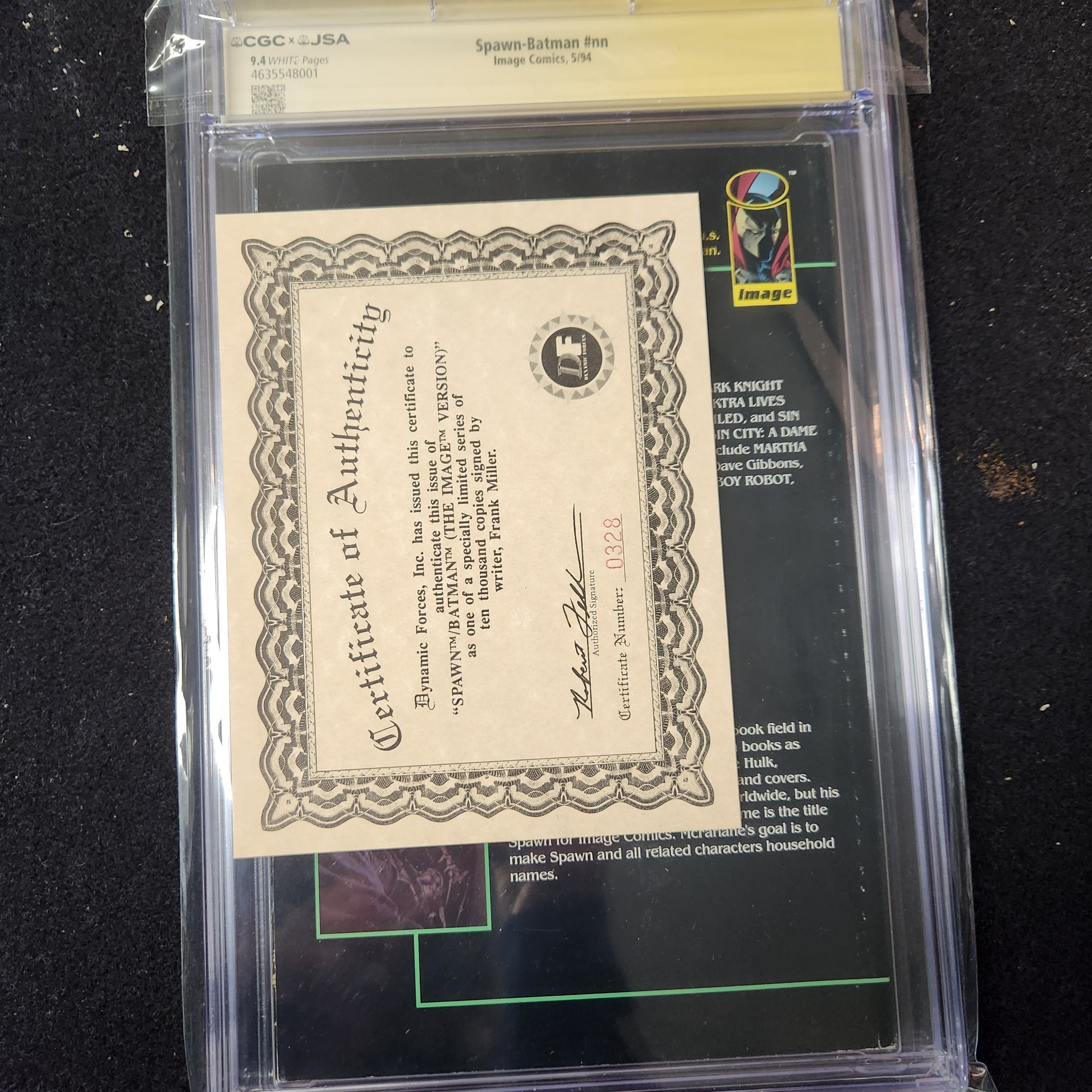 Spawn-Batman (May 1994). Frank Miller story. Authenticated Autograph. CGC 9.4.
